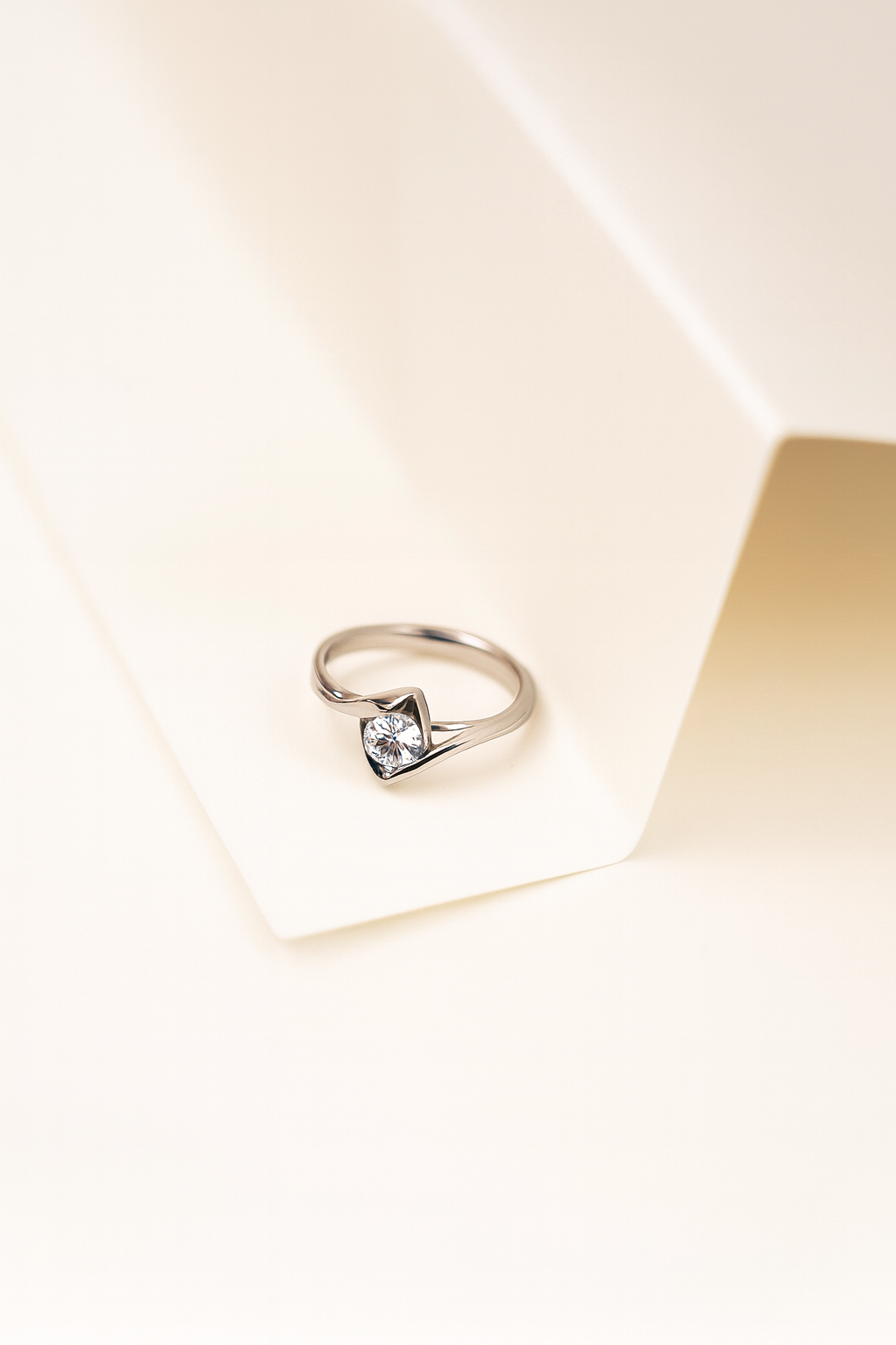 Sleek, modern, and endlessly captivating — Luna Enchant embodies the quiet power of simplicity. Its sculpted silver band gracefully cradles a single luminous stone, creating a design that feels both timeless and contemporary. Each curve reflects the light with effortless sophistication, while the brilliant center stone symbolizes clarity, confidence, and new beginnings. Whether worn as a promise, a statement, or an everyday expression of elegance, Luna Enchant radiates understated luxury — the essence of Luvoria.